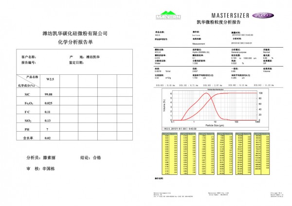 W2.5綠碳化硅微粉是選用優(yōu)質(zhì)大結(jié)晶碳化硅塊經(jīng)破碎、精密分級而成,品質(zhì)穩(wěn)定,結(jié)晶好,表面清潔度高,無大顆粒,細粒含量少,粒度分布集中,研磨效率高。